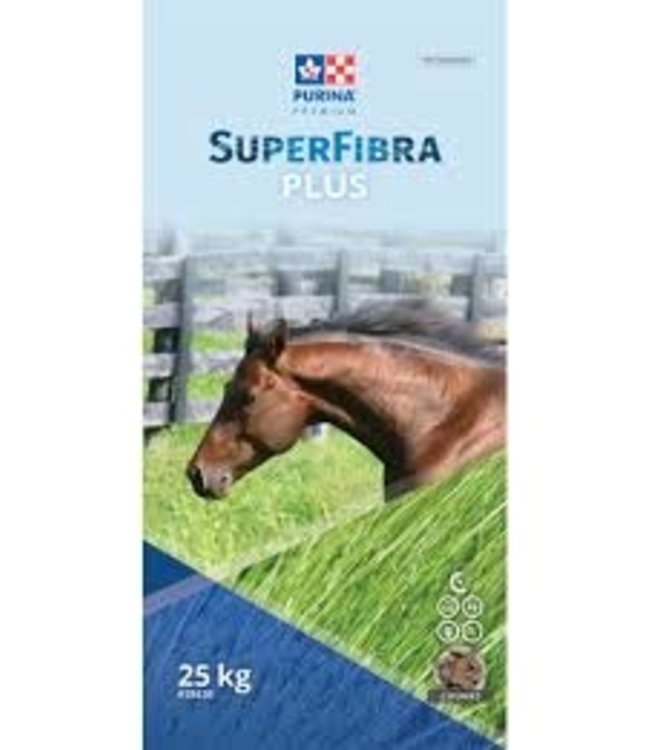 SuperFibra Plus is a versatile feed low in sugar/starch (NSC - nonstructural carbohydrates) in a chunk format. SuperFibra Plus is a complete feed designed to meet the needs of maintenance, exercising, breeding horses and yearlings that require a low sugar/starch diet. SuperFibra Plus is formulated with certified quality ingredients and is manufactured exclusively in our specialized and drug-free facility in Strathroy, Ontario.